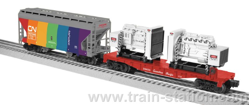 | Features 2-Pack Includes 6-26633 Flatcar with Engines 6-26431 ACF 2-Bay Hopper Features Die-cast metal sprung trucks and operating couplers Flatcar includes load of two removable engine bodies with tie-down "chains" Gauge: Traditional O Gauge Dimensions: Length: Flatcar: 11" / Hopper: 9 1/2" RailLine: Mixed Road Names Minimum Curve: O-27 |