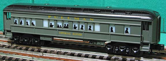 | Produced by Lionel in 2001, and only came in the Baby Madison 4-pack passenger set(6-15153). 9500 style highly detailed plastic molded body, and with gold lettering. Has illuminated interior, six wheel trucks with operating couplers. A great car for any style engine. |