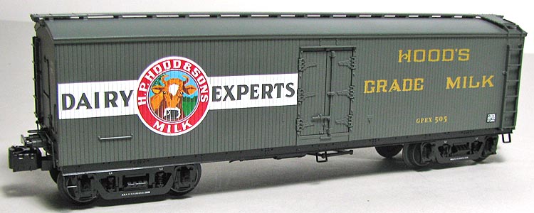 Lionel's General American Milk Car series continues in highly detailed standard O. Features include; die-cast metal sprung trucks and buffers; opening doors; removable roof with detailed interior(plated piping and milk tanks); metal brake lever and brake chain; minimum radius O-31; length 11 3/4". Produced 2003. |
