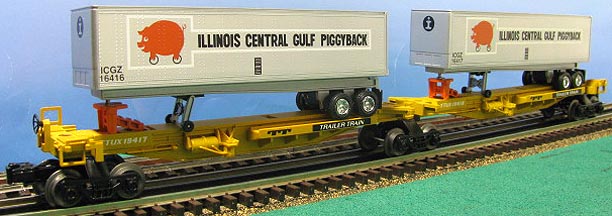 This IC T.T.U.X from the 1993 SOO Service Station Special set(6-11738). This car has become one of the hardest TTUX to find period. Why, Lionel only sold a certain amount of sets to each Service Stations, usually five each. Includes; plastic flat truck trailer trans with plastic trucks two operating couplers. Also has traditional Lionel trailers with IC Gulf containers. Rarity 4. |