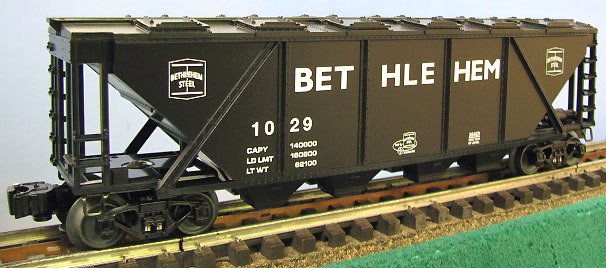 | Built by Lionel in 2011 and part of their 4-car freight set; Horseshoe Curve #6-30180. FEATURES OF BETHLEHEM STEEL HOPPER: operating couplers * die- cast sprung trucks * underbody details * removable hopper cover w/12 spring loaded fill hatches * authentic Bethlehem Steel markings |