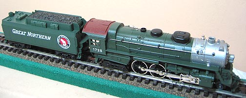 | FEATURES:A full scale tri color O-Gauge loco which operates on 27 inch or larger diameter 19 1/2 inches longAll new diecast boiler li>Precision can motorSpoked metal drivers Traction tiresSignal sound with bell and whistleTender has metal trucksPuffing smokeOperating coupler on tender, along with Rocky the Goat, the Great Northern RR Mascot |
