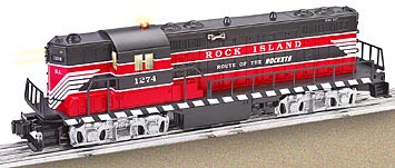 TrainMaster Command Control equipped. Able to run in Command Mode or Conventional Transformer Mode. Railsounds, CrewTalk and TowerCom announcements. Directional lighting including operating headlight. 2 electroCouplers. Powerful Pullmor motor, Magnetraction track gripping system, die cast metal trucks, fuel tank and pilots, operating strobe light and lighted interior. |
