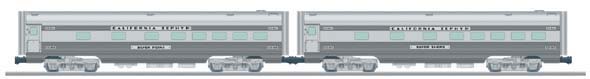 Tough 2-pack produced by Lionel in 2004. Companion piece to the CB&Q 4-pack(6-15311). Two Sleepers. All new die cast sprung trucks and operating couplers with hidden uncoupling tab, extruded aluminum bodies with painted interiors, hand painted passenger figures. interior lighting with on/off switch. minimum radius 0-31 |