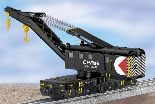 Pull this die-cast metal workhorse into place and take complete command of M.o.W. operations anywhere on your layout. Equipped with the TrainMaster Command Control system, this new crane car offers full remote control operation from the boom to the hooks to the outriggers. Add the matching boom car for one of the most realistic experiences in O gauge. OPERATING CAR FEATURES: Lights, sound, action Die-cast metal trucks and operating couplers Classic reissues All-new innovative designs Perfect additions to Lionel train sets Minimum Curve: O-27 (Except where noted) ADDITIONAL FEATURES: TrainMaster Command Control operation including 360 degree cab rotation, up and down action of the boom, independent control of the main and auxiliary hooks, independent control of the front and rear work lights and deployment of all six outriggers TMCC CAB-1 Remote Controller and TMCC Command Base required Four powerful, maintenance-free motors Die-cast metal six-wheel sprung trucks Front and rear ElectroCouplers Die-cast metal body, frame and boom Operating front and rear work lights Opening cab doors 12 outrigger supports included for use on traditional O gauge, O-27 or FasTrack track Gauge: O Gauge Minimum Curve: O-31 Dimensions: Length: 10 3/4"10.07.01.0223 |