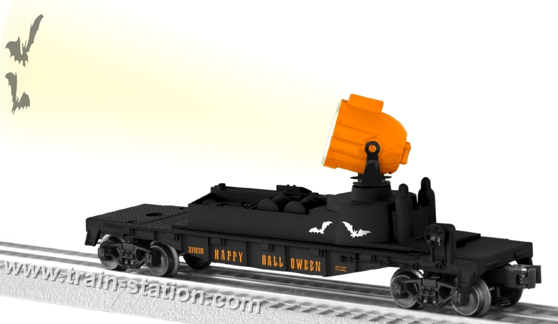 Afraid of the dark? If so, this car is a must-have! Bat silhouettes are decorated on the searchlight lens. Features Die-cast metal trucks and operating couplers Illuminated searchlight Manually adjustable light position Gauge: Traditional O Gauge Dimensions: Length: 11 inches Minimum Curve: O-27 |