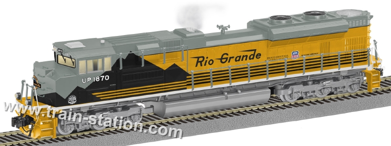 | UP Heritage Scale SD70ACe Diesel In 2007, the Union Pacific unveiled a series of locomotives that serve to honor and pay tribute to t he people and railroads that have made them the leader they are today. Each locomotive features a unique paint scheme, incorporating elements of major railroads that have merged with the Union Pacific. Available with either traditional Amercian Flyer or scale wheel sets Features Scale Wheels LEGACY Control System equipped - able to run in LEGACY Control mode, Trainmaster Command Control mode or in Conventional mode with a standard transformer AF Speed Control with On/Off switch lets your locomotive operate smoothly and consistently over grades and through curves LEGACY RailSounds sound system featuring: - CrewTalk dialog and TowerCom announcements, each with different scenarios depending on whether the locomotive is in motion or stopped - Six official railroad speeds with CrewTalk d ialog - Eight diesel RPM levels - LEGACY 'Real-Time Quilling Horn' control with instant response for realistic signature 'quilling' and correctly timed warning signals - Single hit or continuous mechanical bell sounds - Independently adjustable volume control All New Scale Tooling Two powerful motors with momentum flywheel Front and rear ElectroCoupler Operating headlight Operating marker lights on front and rear Illuminated number boards Illuminated cab interior Traction tires Metal frame Fan-driven smoke unit Die-cast metal trucks, pilots, and fuel tanks Separately applied metal details Detailed cab interior Cab window glass Engineer and conductor figures Road Number: 1870 Gauge: S Scale Dimensions: Length: Approx. 13 3/4 inches RailLine: Denver & Rio Grande Western Minimum Curve: 36 inch dia. |