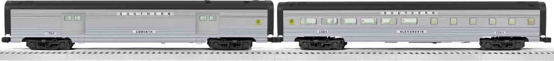 18" Aluminum Cars - A great addition to match up with our E8 diesels Features Die-cast metal sprung trucks and operating c ouplers with hidden uncoupling tab Operating end vestibules with flexible diaphragms Separately applied metal roof vents and grab handle details Metal underframe detailing Opening end doors Metal frames Authentically detailed and painted interiors (except baggage car) Interior LED lighting with ON/OFF control Passenger and train crew figures (except baggage car) Smooth roof Gauge: Standard O Scale Dimensions: Length: 38" 2-pack / 19" single car RailLine: Southern Minimum Curve: O-54 |