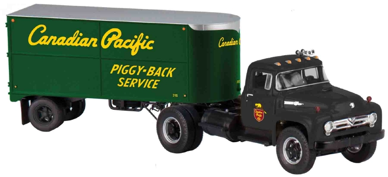 As early as the 1940's "Piggyback"-style trailers were hauled by the railroads on the decks o f flatcars. After their journey on the rails, these same trailers were then pulled by semi- tractor trucks to reach their final destinations. Now you can have the complete intermodal cycle w ith flatcars, trailers, and tractor trucks available in a variety of road names. Features Semi-Tractor Features: Die-cast metal construction Opening doors Separately applied details Piggyback Trailer Features: Opening doors and adjustable landing gear Separately applied details Spare tire under each trailer Flexible mud flaps Gauge: Standard O Scale Dimensions: Length: 6" RailLine: New York Central |