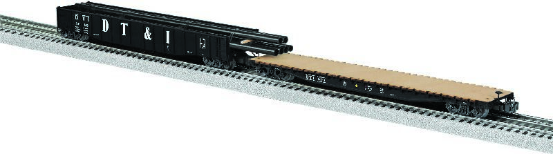 | Take full advantage of the drop ends on the PS-5 gondola as you move some oversize loads on your railroad! A PS-4 flatcar acts as an idler to protect the 15" long pipe load which extends beyond the bed of the gondola! Includes: PS-5 gondola PS-4 flatcar Oversize load of six 15" pipes Features Die-cast metal sprung trucks and operating couplers with hidden uncoupling tabs Die-cast frame and body on flatcar Wood deck on flatcar Road Number: 2055 & 910 Gauge: Standard O Scale Dimensions: Total length: 29.5" RailLine:Detroit, Toledo & Ironton Minimum Curve: O-36 |
