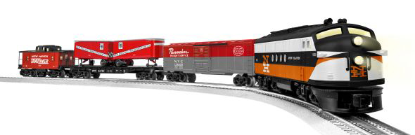 High in the Alleghenies of Pennsylvania, a mighty Berkshire steadily makes its way on the iron rails hauling a heavy line of freight cars. America's most famous railroad never sleeps, and this Pennsylvania steam locomotive works hard to get its goods to their destination on time. The "Allegheny Hauler" is one of Lionel's highest caliber traditional sets in 2016 and includes a deluxe "Figure 8" set of track to add to the excitement. There's no shortage of great cars in this special set, including three freight cars with die-cast sprung trucks and an illuminated caboose with antennas on the roof. Led by a LionChiefT Berkshire, this deluxe train set brings high quality excitement and action to your layout! Set Features: Berkshire locomotive Gondola with covers Single-dome tank car Double-door boxcar Porthole caboose Eight curved O36 FasTrack track sections, one 10" straight FasTrack Plug-n-Play power lock-on section, one FasTrack terminal section, and two 10" straight FasTrack sections. NEW! 54W wall pack power supply LionChief remote for powered car Locomotive Features: Electric locomotive controlled by remote Operating headlight Puffing smoke On/Off switches for smoke and sound RailSounds RC sound system with with steam chuffing and background sounds, horn, bell and user-activated announcements Chuffing sounds in sync with puffing smoke Die-cast locomotive body, frame and trucks Powerful maintenance-free motor with momentum flywheel Traction tires Engineer and fireman figures Die-cast metal tender body and trucks operating coupler on rear of tender Freight Car Features: Die-cast metal sprung trucks except caboose Die-cast metal trucks on caboose Operating couplers Opening doors on boxcar Metal handrails, platform, and ladders on tank car Removable coil covers on gondola Interior illumination in caboose Antenna system on caboose roof LionChief Remote Features: Forward and reverse speed control knob Three buttons to activate horn, bell, and special announcements Requires three AAA alkaline batteries (not included) PRODUCT SPECIFICATIONS Gauge: Traditional O Gauge Scale Type: Semi-Scale Power: Electric Min Curve: 027 Layout Dimensions: 40" x 60" track |