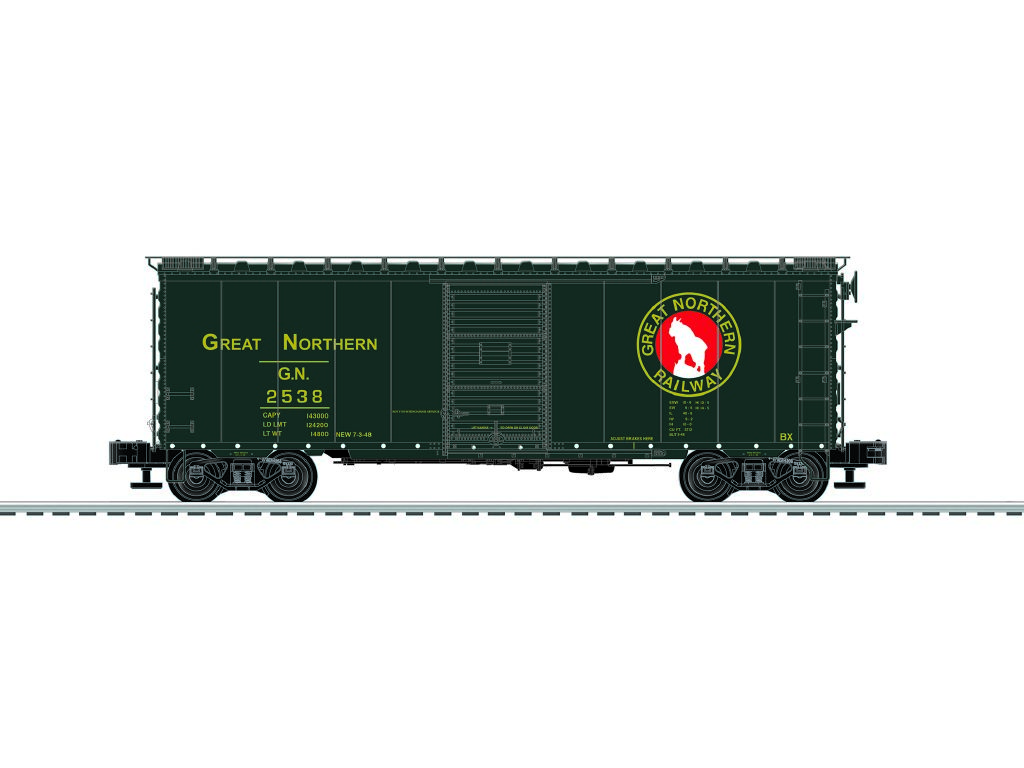 Equipped for parcel and bulk mail loading, these boxcars were used in passenger service and carried special, often colorful paint schemes to match. FEATURES: Die-cast metal sprung trucks and operating couplers Easily converted to scale couplers Separately applied metal underframe details Opening doors PRODUCT SPECIFICATIONS Rail Line: Great Nornthern Road Number: 2538 Gauge: O Gauge Scale Type: Scale Min Curve: O31 Product Length: 11.25 inches |