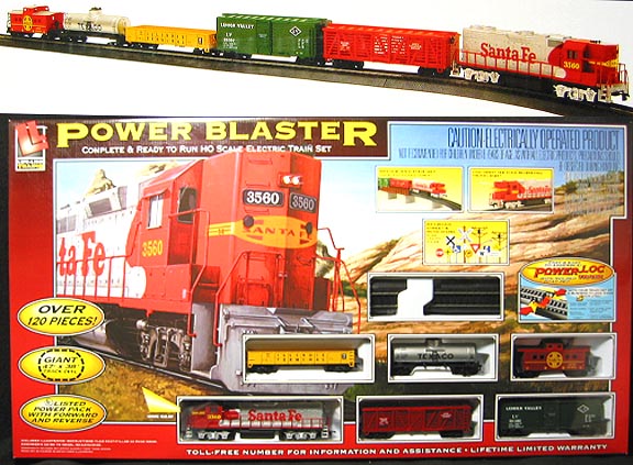 | This complete starter set features Powerloc track for easy snap together use. The GP-38 pulls a stockcar, boxcar, tank car, gondola and yellow caboose. Backed by Life-likes Lifetime warranty. |