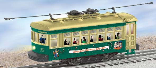 | Ride from one end of the North Pole Village to the other, taking in all the hustle and bustle, then ride back with an armful of bright holiday packages With its bright LED headlights, interior lighting, and roof details, this colorful trolley brings holiday enjoyment to any layoutBumper controlled forward and reverse operation Operating LED headlights and interior lightingColorfully-illustrated passengers Powerful maintenance-free motor and traction tire Handling a 27 inch diameter curve with ease, the Trolley will run on all O-27 Gauge, O gauge and Fastrack Layouts from any manufacturer. Length: 6 3/4"10.07.02.0005 |