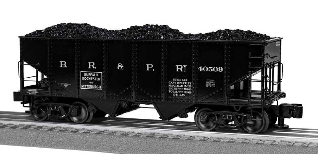 | A common design of the early 20th Century, these 2-Bay hoppers remained a common sight on railroads t hrough the Transition Era. Features: Die-cast metal frame Die-cast metal trucks and couplers with hidden uncoupling tabs Easy conversion to scale couplers and two-rail wheelsets (available separately) Removable coal loads Detailed plastic body with add-on details and interior bracing Product Specifications: Gauge: O Gauge Dimensions: Length: 8" each Minimum Curve: O31 |