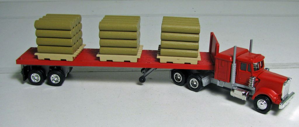 LIONEL TRUCK AND FLATBED WITH 3 SKID LOADS