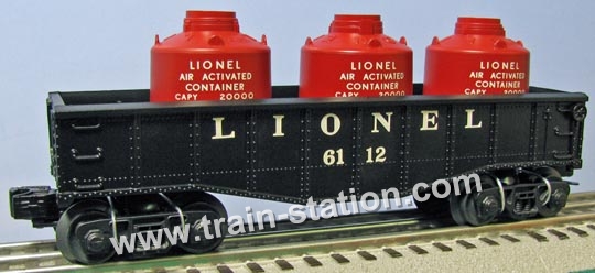 | Car is equipped with new AAR all metal die cast trucksOperates on any fastrak, O-27 or O gauge layoutgondola has operating couplers on both endsRemovable canisters included. |