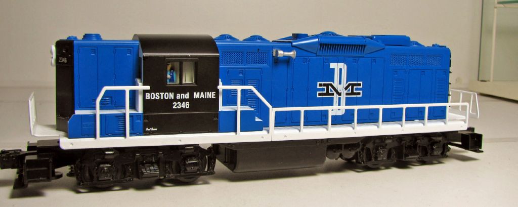 | Just a few miles removed from the world's busiest metropolitan corridors, the Boston & Maine's many bucolic branch lines came alive with the daily passage of the local train. Inbound raw materials and outbound loads from New England's many small industries kept these iron horse couriers busy at all hours. Locomotive Features: Transformer controlled forward, neutral, and reverse operation RailSounds RTR sound system with diesel revving, user-activated horn, bell, and crew dialog scenarios with battery backup Operating headlights Operating coupler on both ends Powerful maintenance-free motor Die-cast metal trucks Metal frame and handrails Traction tires Interior illumination Dynamic brake hatch on roof Road Number: 2346 Gauge: Traditional O Gauge RailLine: Boston & Maine Minimum Curve: O-27 |
