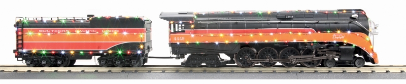 4-8-4 Imperial GS-4 Northern Steam Engine w/Proto-Sound 3.0 And LED Lights - Southern Pacific Lines (Daylight Small Lettering) Cab No. 4449 Intricately Detailed, Die-Cast Boiler and Chassis Intricately Detailed, Die-Cast Tender Body Authentic Paint Scheme Die-Cast Locomotive Trucks Handpainted Engineer and Fireman Figures Metal Handrails and Whistle Metal Wheels and Axles Remote Controlled Proto-Coupler Prototypical Rule 17 Lighting Constant Voltage LED Headlight Operating LED Marker Lights Operating LED Numberboard Lights Lighted LED Cab Interior Operating Tender LED Back-up Light Operating LED MARS Light Operating Body Mounted LED Lights On Boiler and Tender Powerful Precision Flywheel-Equipped Motor Synchronized Puffing ProtoSmoke System Locomotive Speed Control In Scale MPH Increments Wireless Drawbar Onboard DCC/DCS Decoder Proto-Sound 3.0 With The Digital Command System Featuring Passenger Station Proto-Effects Unit Measures: 21 1/2" x 2 5/8" x 3 3/8" Operates On O-31 Curves Steam DCC Features |