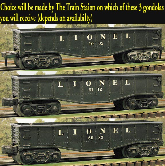 | Gondolas are the great 'carry and handle everything' railroad car, and kids will load them up with everything and play with them constantlyThese cars are 50 or years old, have been reconditioned by our service department and work as well as they day they left the factory. May have slight marks or other signs of prior usage which adds to the ageless character of these carsChoice will be made by the Train Station which 1 you will receive out of the 3 pictured. |