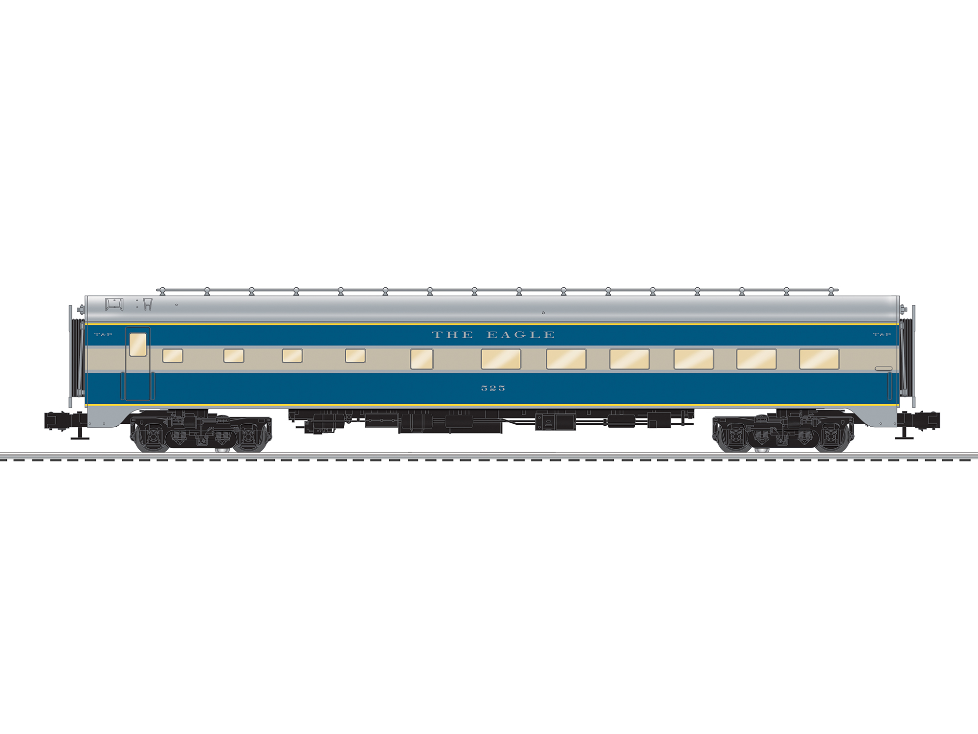 The Texas & Pacific found a pair of E units excessive for some of their smaller passenger trains. The road had 4 F7A and 2 F7B units equipped and painted for passenger service. Trains like the Louisiana Eagle often ran with the i nteresting pairing of an E and F unit combination. When not needed in passenger service, both the A and B units seemed to frequently show up on freight duty as well. Secondary trains like these are perfect for modeling. What they lack in fame, they make up for in character! And so we present the Louisiana E agle with a mixed set of E8/F7A, a SuperBass F7B a nd seven 18" streamlined passenger cars all in the beautiful blue and gray of the T&P! Aluminum body construction Die-cast sprung trucks Kinematic couplers Opening doors Flicker-free LED interior lighting Complete interiors with figures Separately applied detail parts |