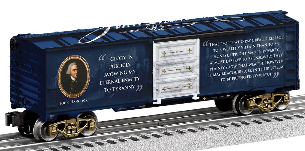 Continuing our celebration of Founding Fathers within Americas 250th, the series returns with this boxcar, assembled and printed in the USA, honoring founding father John Hancock