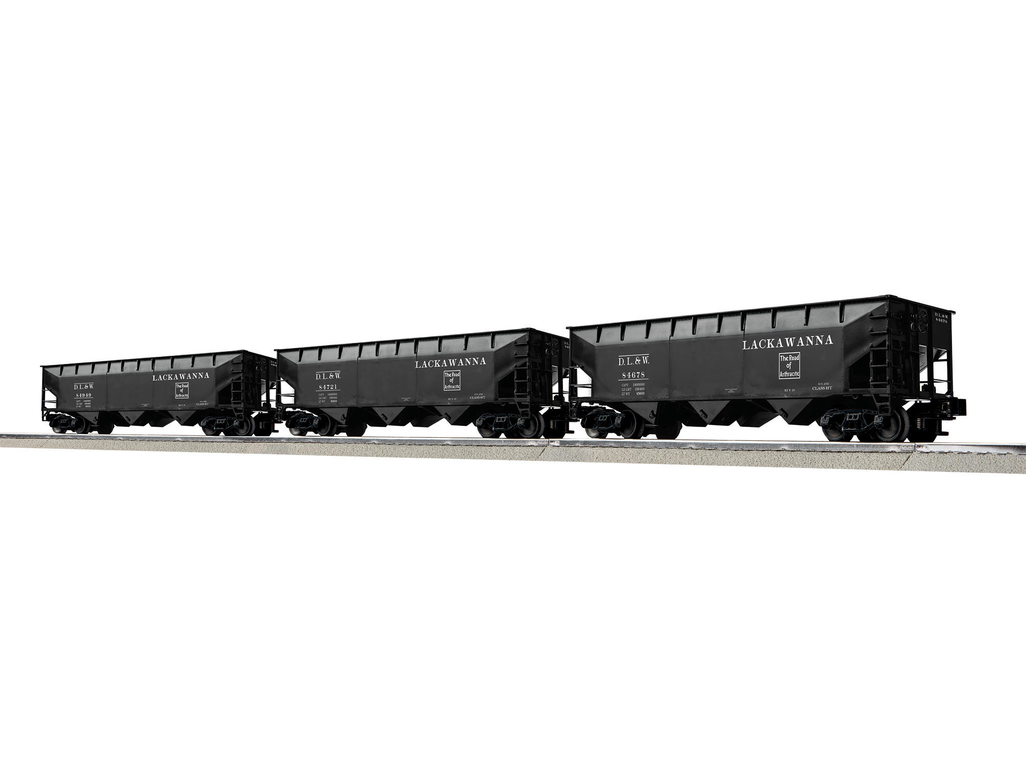 Based on a 70-ton car common across the United States, these three-bay hoppers were a work force for the railroad. Whether singly or, more often, in unit trains, these were a daily sight from the 1940s through the 1980s. Lionel's cars feature realistic molded in detail for added durability and lower costs making it easy to build a long coal train of your own with seven road numbers available per scheme. Plastic bodies with added metal weights ensure good tracking even when empty. But loads are also easy w ith our new one-piece load inserts available separately. Plastic body with molded in detail Die-cast trucks with operating couplers and hidden tabs Easy conversion to scale couplers and 2 rail wheels (available separately) |