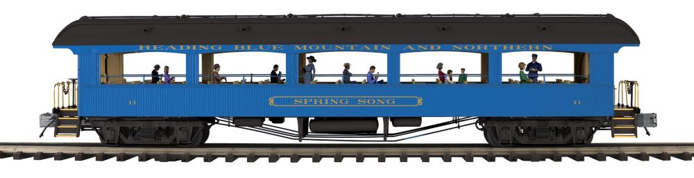 | Features: Road Name: Reading Blue Mountain & Northern Cab/Car Number: 11 Spring Song O Scale Passenger Car Product Line: Premier Delivery Status: August 2026 Intricately Detailed, Durable ABS Bodies Detailed Car Undercarriage Authentic Paint Scheme Metal Wheels and Axles Diecast 4-Wheel Trucks Fast-Angle Wheel Sets Needle-Point Axles Two Operating Diecast Metal Couplers O Scale Kadee-Compatible Coupler Mounting Pads Constant Voltage Overhead LED Interior Lighting Separate Metal Handrails Detailed Car Interiors Detailed Brake Wheel Each Passenger Car Contains 12 Hand Painted Figures 1:48 Scale Proportions Measures 51 5/8" x 2 1/2" x 3 5/8" Operates On O-42 Curves |