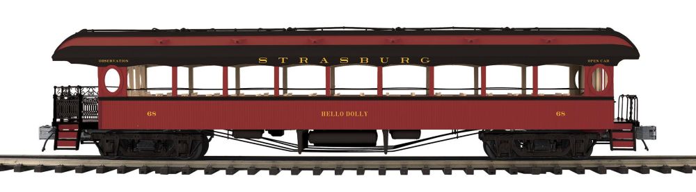 O SCALE PREMIER STRASBURG 64' OPEN AIR WOOD-SIDED OBSERVATION CAR 20-62198