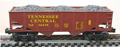 | Lionel offered this hopper in 1996. FEATURES: Plastic molded body * removable coal load * operating knuckle couplers * metal wheels and axles * Symington-Wayne plastic trucks * authenic TC paint scheme and graphics * |