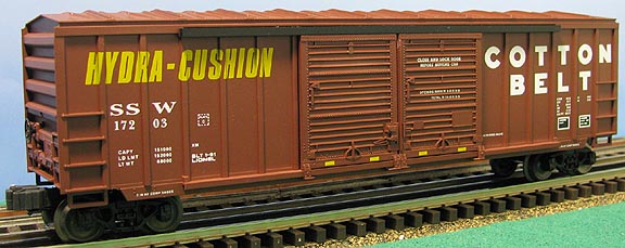 Produced by Lionel in 1991. This was the first DD boxcar produced by Lionel in STD O. Double door scale 60 foot auto carrier, highly detailed brown plastic molded body , metal sprung trucks and operating couplers. Also authentic Cotton Belt graphics.
