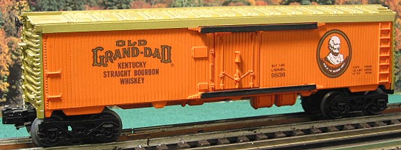 | Produced by Lionel in 1983-84, and part of there Favorite Spirits billboard reefer series. These alcohol Billboard reefer's have become extremely hot in the market place, and probably the best looking series MPC produced. Lionel will most likely never produce alcohol cars again. Features; plastic molded reefer body with detailed under-carriage, opening doors, plastic trucks with operating couplers, and authentic Old Grand-Dad paint scheme and graphics(multicolor electrocal Old Grand-Dad decal). |