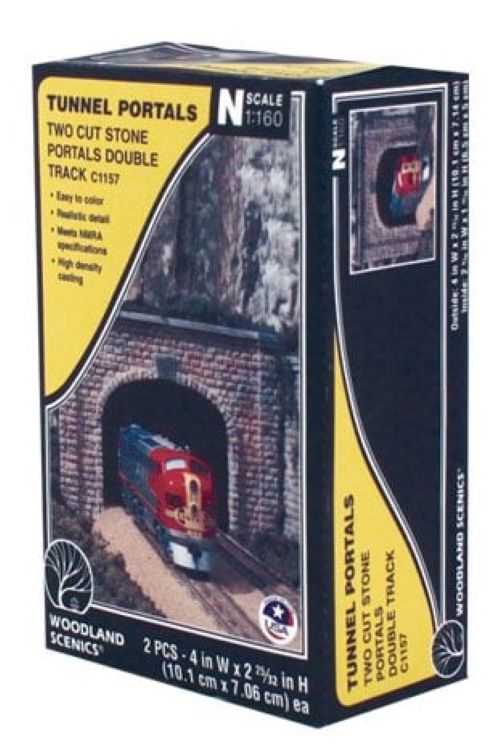 WOODLAND SCENICS N SCALE TUNNEL PORTALS - 2 CUT STONE DOUBLE TRACK
