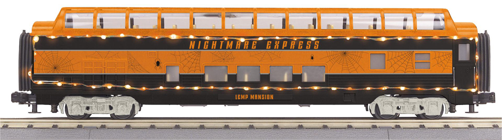 MTH RAILKING O GAUGE HALLOWEEN 60' STREAMLINED FULL-LENGTH VISTA DOME CAR WITH LED LIGHTS