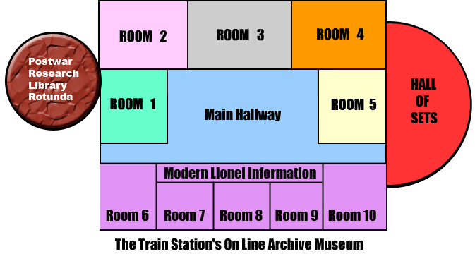 A place to view exciting items from Lionel's History. Many of the items are not for sale. Some were photographed in our store, some at other locations. Enjoy visiting the various rooms of our Archive Museum. PLEASE NOTE: The Archives are a work in progress, and we will be adding items and more complete descriptions as we progress. All Rooms are now open. including the new Postwar Research Rotunda. The Archives are always a "Work in Progress!" Click on a Room Below to get started: |