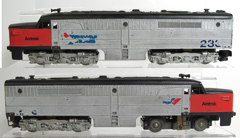 This loco appears to be a 497 repainted as a 233 Amtrak! Great candidate for repair for the operator. LG.