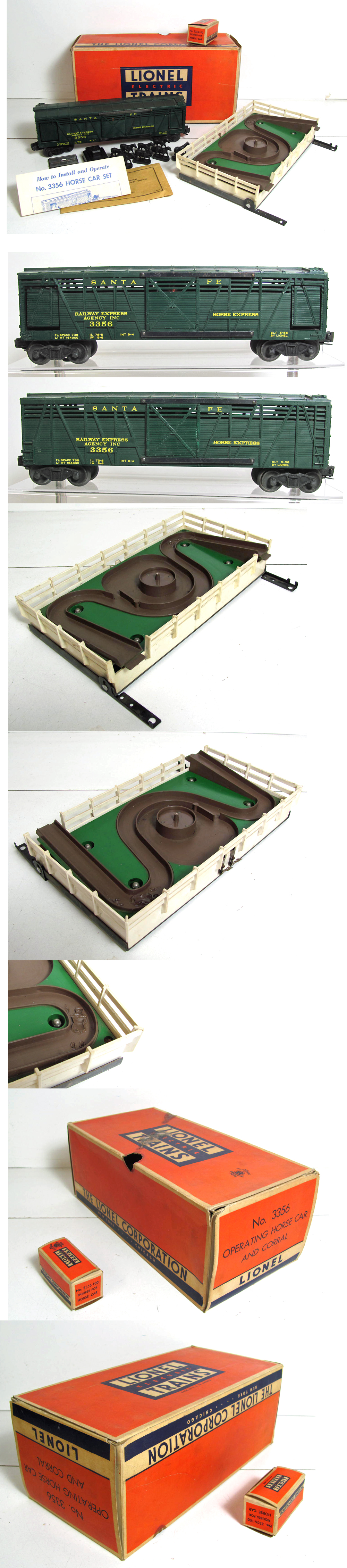 Car is Like New but corral has a melt mark on the brown walkway as shown. Comes with eight horses and their original box, an original instruction sheet, OTC lock-on, envelope, 364C contactor button (plastic broken but still operates), and the original box which has all flaps intact!